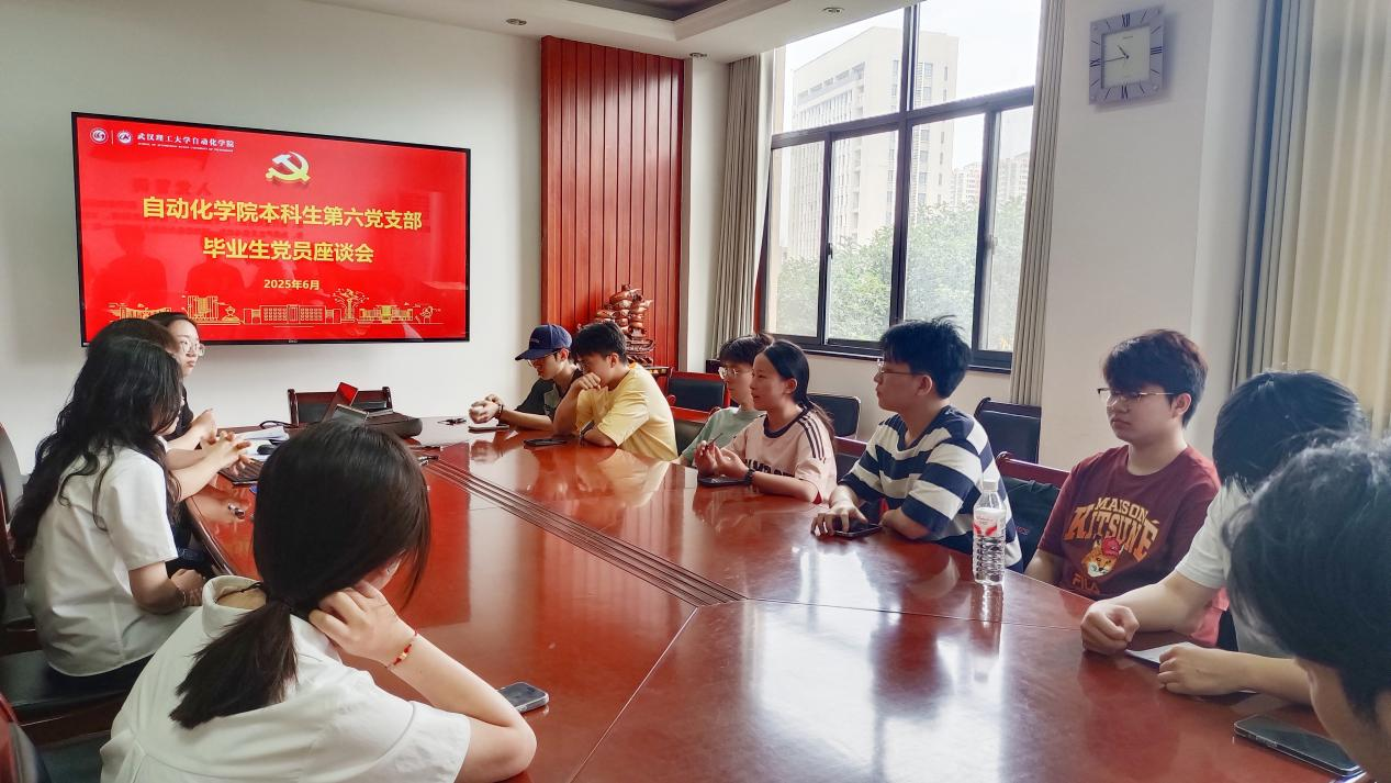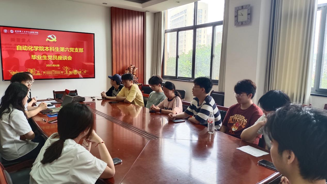 为强化毕业生党员的使命担当,激励青年党员在新征程上接续奋斗,2025年6月15日上午,自动化学院本科生第六党支部在求实楼309会议室召开毕业生党员座谈会。会议由党支部书记石晓琪同志主持,支部全体党员参加。