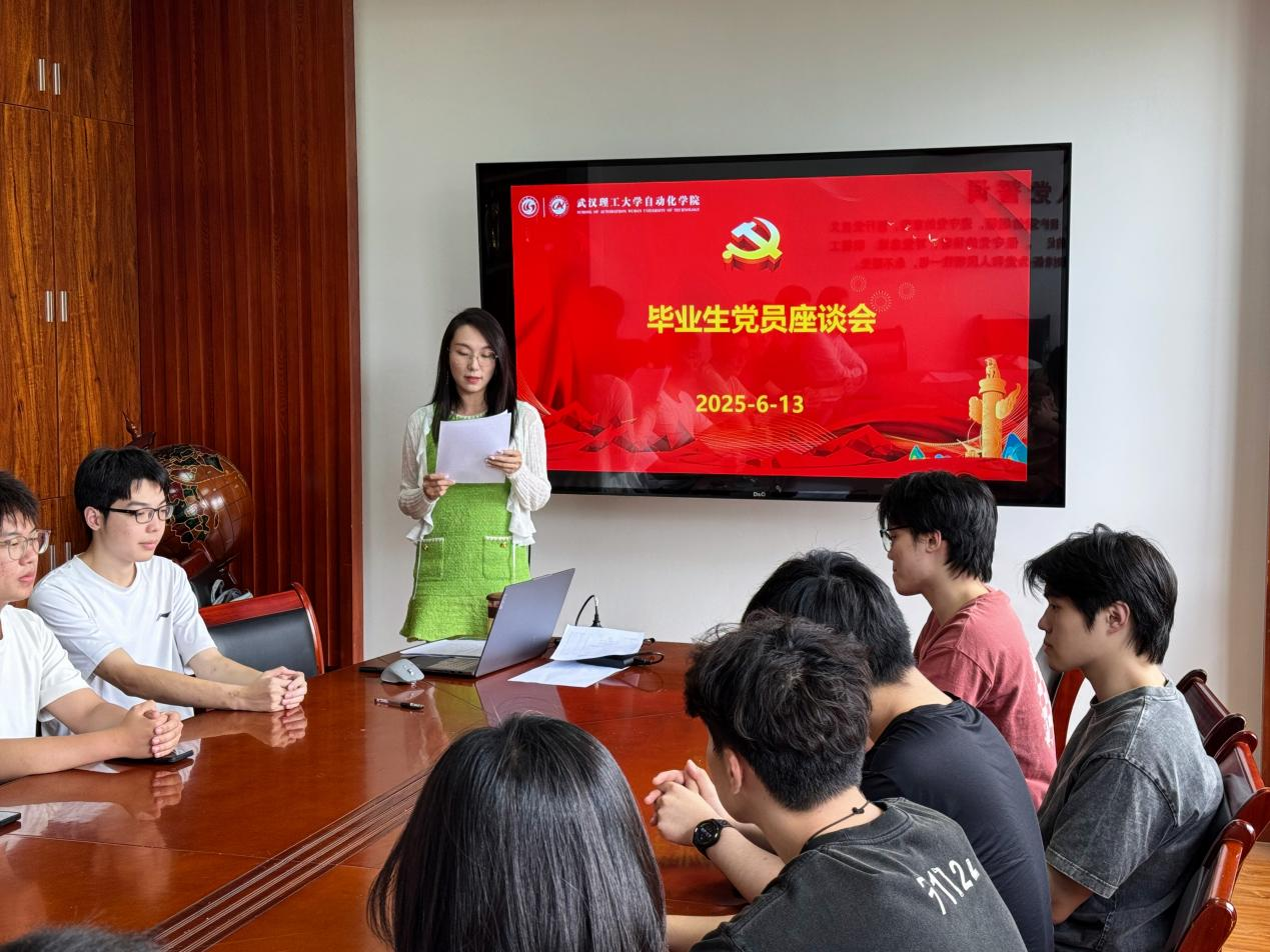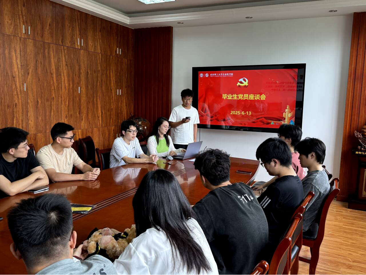 为进一步加强毕业生党员的思想引领,增强党员身份认同与责任意识,2025年6月13日中午,自动化学院本科生第五党支部于求实楼309会议室召开毕业生党员座谈会。支部全体党员参会,会议由党支部书记周芷馨主持。