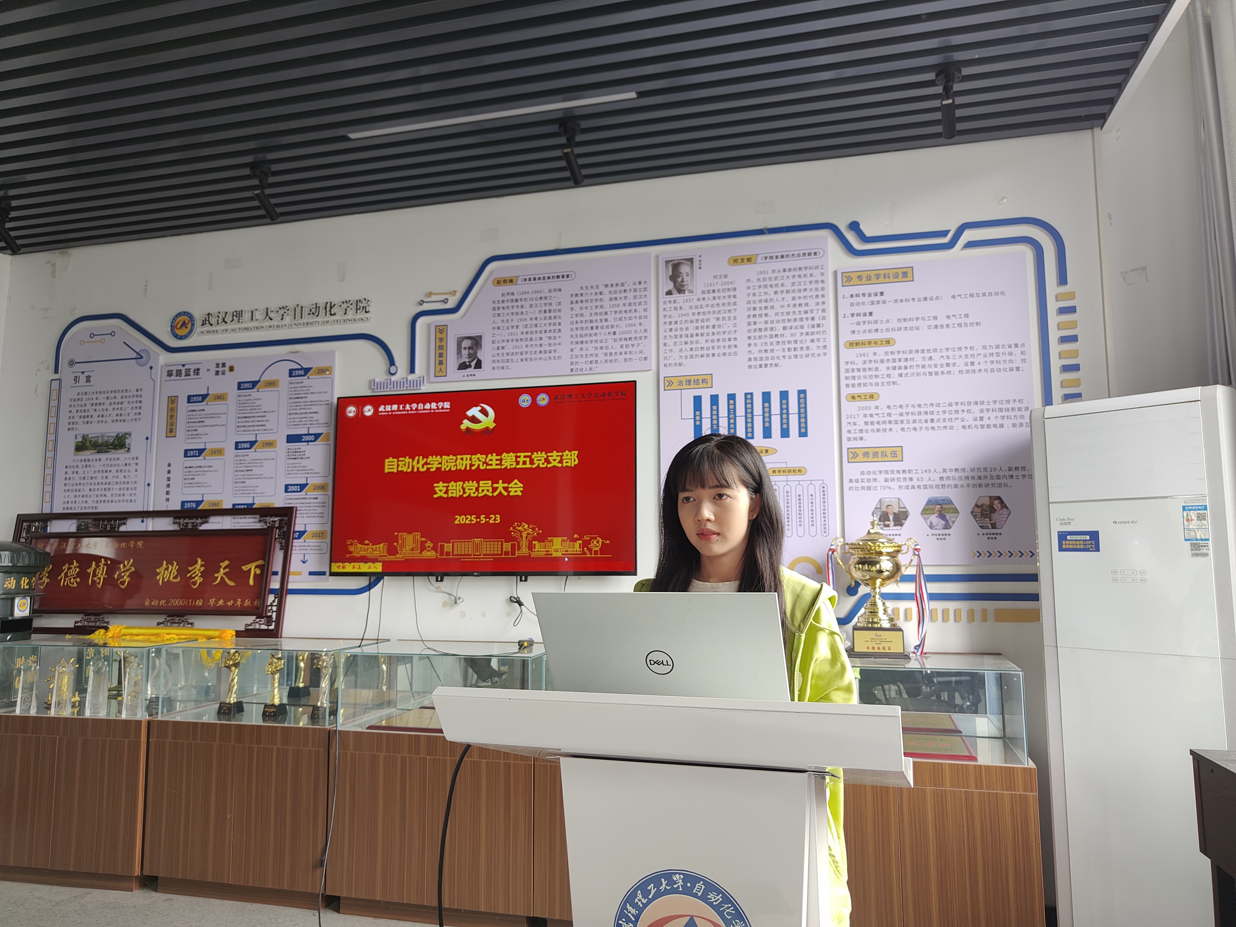 5月23日中午,自动化学院研究生第五党支部在综合楼三楼文化展厅召开全体党员大会,会议主要围绕讨论接收马路路同志为预备党员的相关事宜展开。本次会议由支部书记尚宇菲同志主持,支部党员参与。