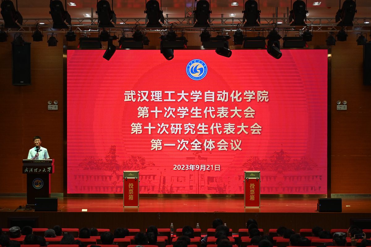 921日晚,武汉理工大学自动化学院第十次学生代表大会、第十次研究生代表大会在南湖校区立德楼卓越报告厅隆重召开。学院领导出席大会,学院学生会组织指导老师、各学生班级、研究生会、学生会和学生社团的学生代表参加。
