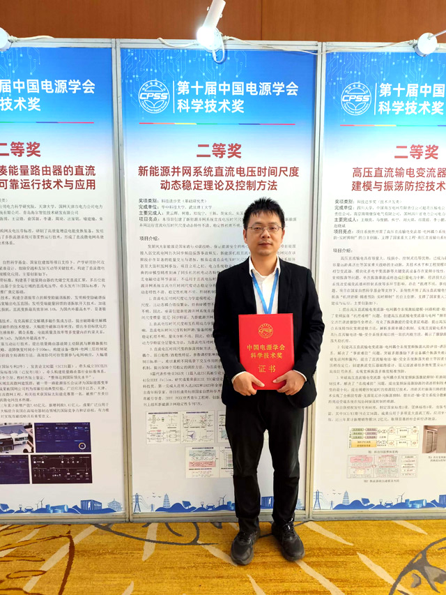 2024年11月8-11日,中国电力电子与能量转换大会暨中国电源学会第二十七届学术年会及展览会(CPEEC & CPSSC 2024)在西安隆重召开。我院黄云辉、王栋、朱国荣等老师联合华中科技大学一起申报的成果“新能源并网系统直流电压时间尺度动态稳定理论及控制方法”荣获了中国电源学会科技进步奖二等奖。
