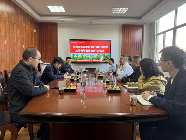 郝智海董事长深入介绍了湖北省宏泰产融投资有限公司发展历程、社会合作与科技创新成果、人才引进、核心优势与合作实例等方面。双方围绕自动化系专业以及新能源动力电池工程展开了热烈的讨论,并共同表达了强烈的合作意愿。