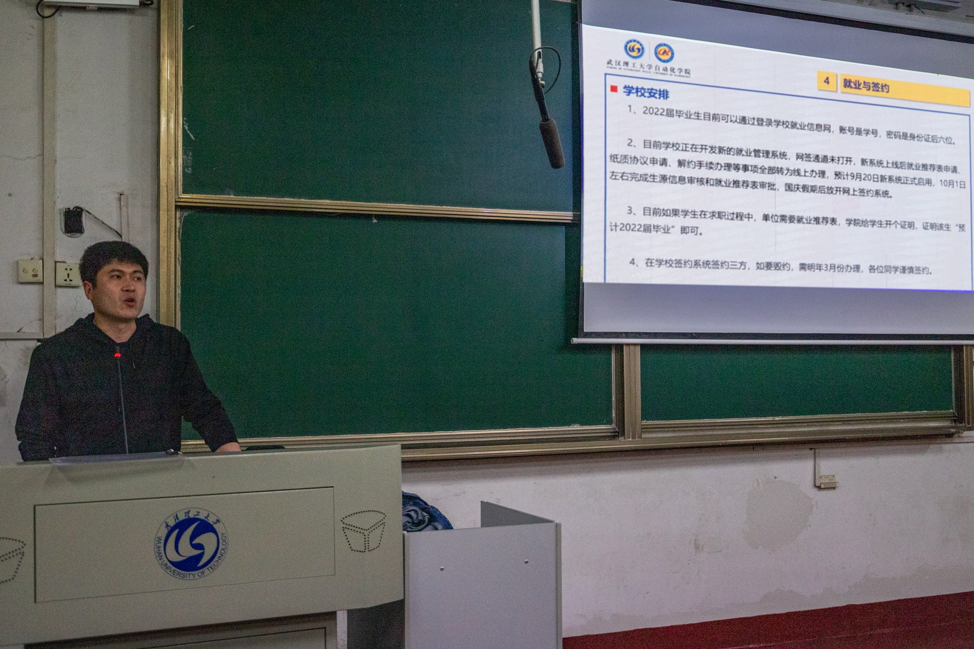 为帮助2022届毕业生认清当前抗疫背景下的就业形势,引导学生树立正确的就业观,提高诚信安全就业意识,10月10日晚,我院2018级在弘毅楼501教室进行了毕业生就业教育,由年级辅导员王建建老师主讲。