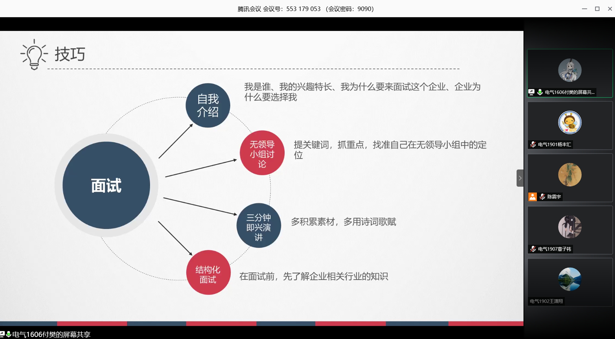 就业达人付樊同学以“人生如远行,需要做足准备”为主题进行发言。他从“明确自己想要什么、适合什么,再去做准备”观点的引入,深入介绍了求职过程中准备环节、简历书写、目标调整、应聘技巧所要注意的要点和细节。他通过生动实用的求职案例,给予同学们启迪性建议。他在发言中表示,希望同学们树立正确的就业观,提前做好生涯规划,能够在未来大学生活中,不迷茫,不盲从。