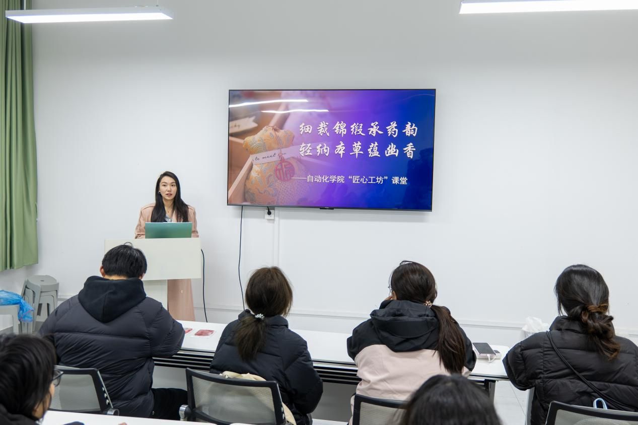 为传承博大精深的中医药文化,让匠心精神在手工创作中焕发新活力,2025年11月26日晚,自动化学院第六期“匠心工坊”课堂在桂园社区如期开展。本期课堂以“中药香囊制作”为主题,将中医药智慧与传统手工技艺相融合,带领师生们在甄选本草、缝制香囊的过程中,体悟本草馨香中的匠心传承。
