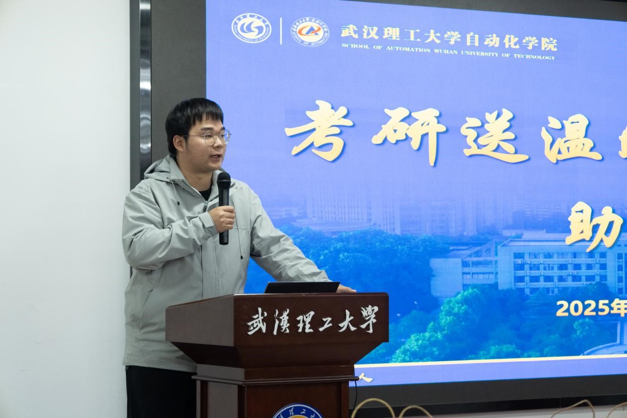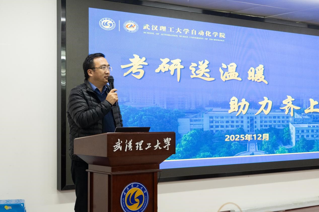 随后,学院党委副书记吕睿为同学们送上考前寄语与备考指导。他表示,考研备考的日夜坚守终将成为人生路上珍贵的财富,希望同学们在最后阶段坚定信念、咬牙坚持,让这段奋斗时光绽放应有价值。吕书记还强调,同学们并非孤军奋战,班级和学院是温暖的集体,要互帮互助、共克难关。