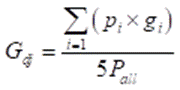 ③汇总评价结果,将1-5档对应计算值1-5分,计算出各分项的评价结果;