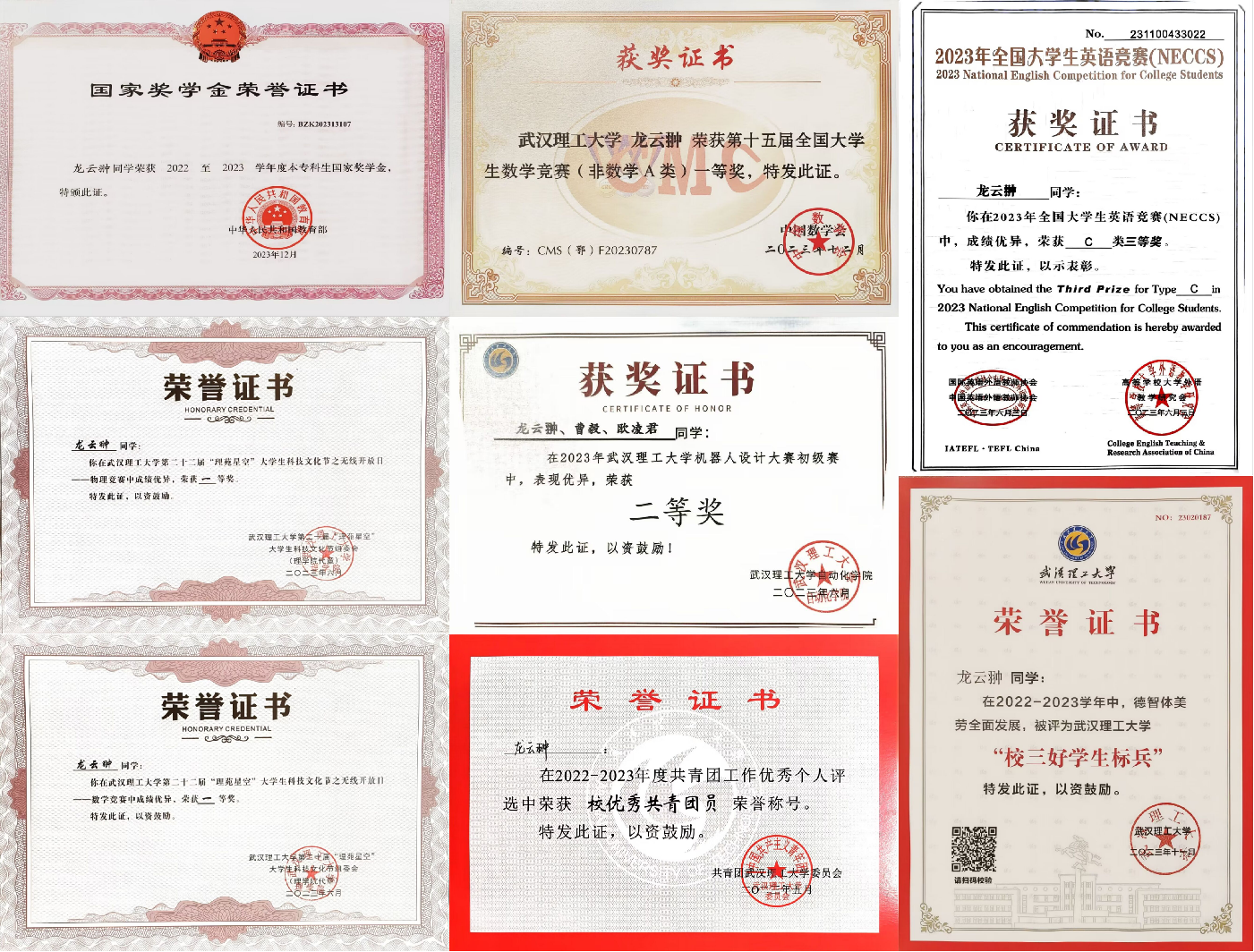 大学生活的点滴努力与累累硕果,无不见证着龙云翀在学习、竞赛、科研、服务中不断前行的脚步。从孜孜不倦的学术探索到无畏向前的科技创新,从严谨细致的学生工作到真诚热心的志愿服务,他用执着与热爱书写青春篇章,用行动与成绩回应时代召唤。