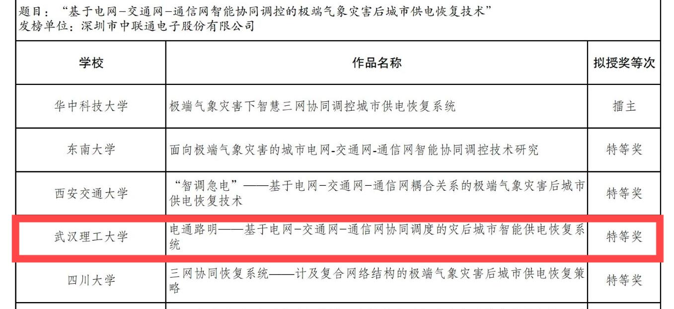 在完成本科课程之余,龙云翀长期坚持投身于科研探索之中,秉持“学以致用,知行合一”的科研理念。在第十九届“挑战杯”“揭榜挂帅”专项赛中,他带领团队积极响应国家重大需求,针对“基于电网-交通网-通信网智能协同调控的极端气象灾害后城市供电恢复技术”这一技术难题,勇于揭榜,担任项目负责人。面对专业知识匮乏和项目压力,龙云翀迅速调整心态,带领团队从零开始,克服重重困难。通过合理分工与高效协作,团队成功研发出“电通路明——基于电网-交通网-通信网协同调度的灾后城市智能供电恢复系统”,实现了风险态势评估与三网协同供电恢复策略的实时求解,并开发相应原型系统,充分发掘电网诸多可用资源潜力,促成灾后电网的快速平稳重建,在极端天气灾害中强有力支撑城市生命线系统的安全运行,最终该项目荣获全国特等奖。